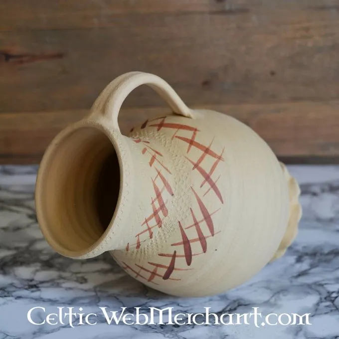 Es ist komplett in Handarbeit von der Ton aus dem Rheinland, die Niederlande, Deutschland und Italien um die Mittelalter gehandelt wurde. Der luxuriöse Gießen Krug ist einfach, aber stilvoll eingerichtet. Seine Länge beträgt 20 cm.