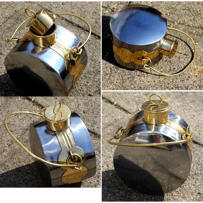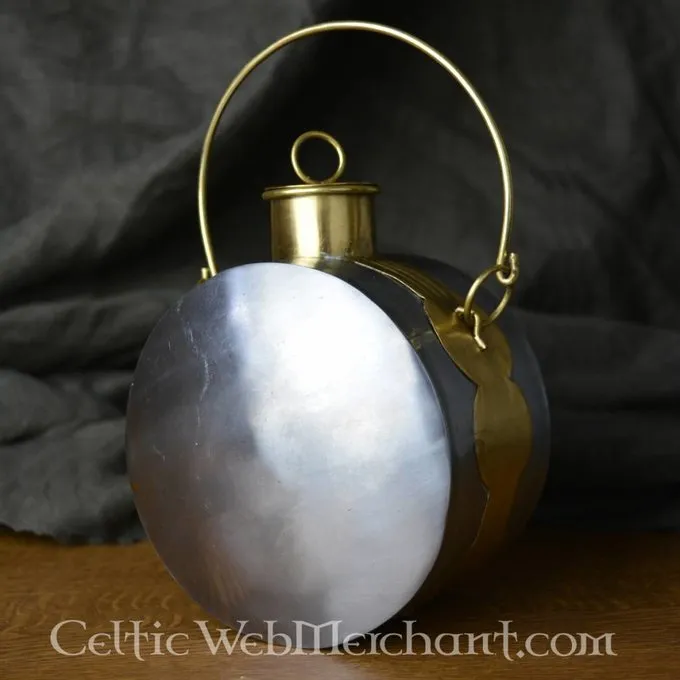 Nachbau eines römischen Kantine. Ein römischer Legionär reiste manchmal 40 km pro Tag. Die Soldaten nahmen mehrere Kantinen für unterwegs zu trinken. Diese Kantinen wurden nicht für alkoholische Getränke verwendet. Bier und Wein wurden auf Kampagnen verboten.