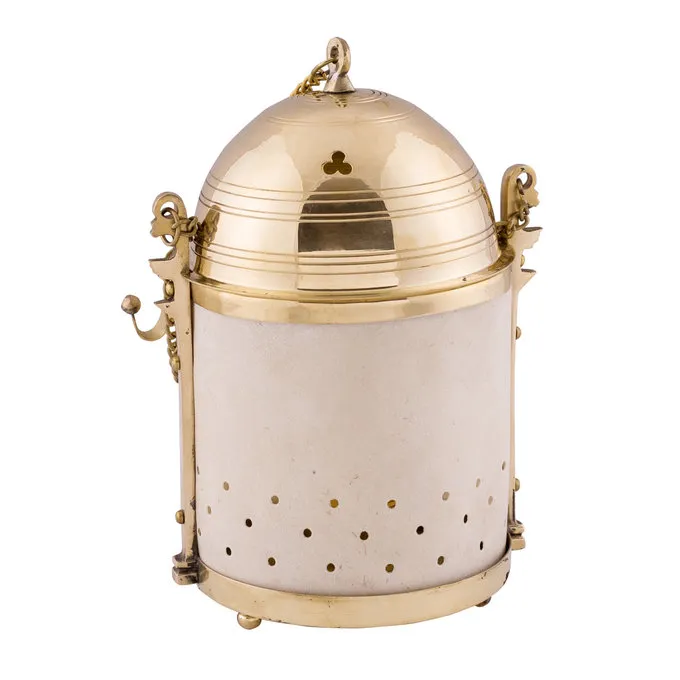 Material: Messing, Pergament (Rohleder) / Höhe: 23,5 cm / Durchmesser: 13 cm / Dimensionen des Öl repository: 5 cm Durchmesser, Höhe 4,5 cm / Innendurchmesser Dochthalter: 6 mm / Gewicht: 800 g / Lieferung ohne Docht und Öl / Auf einem historischen Origin