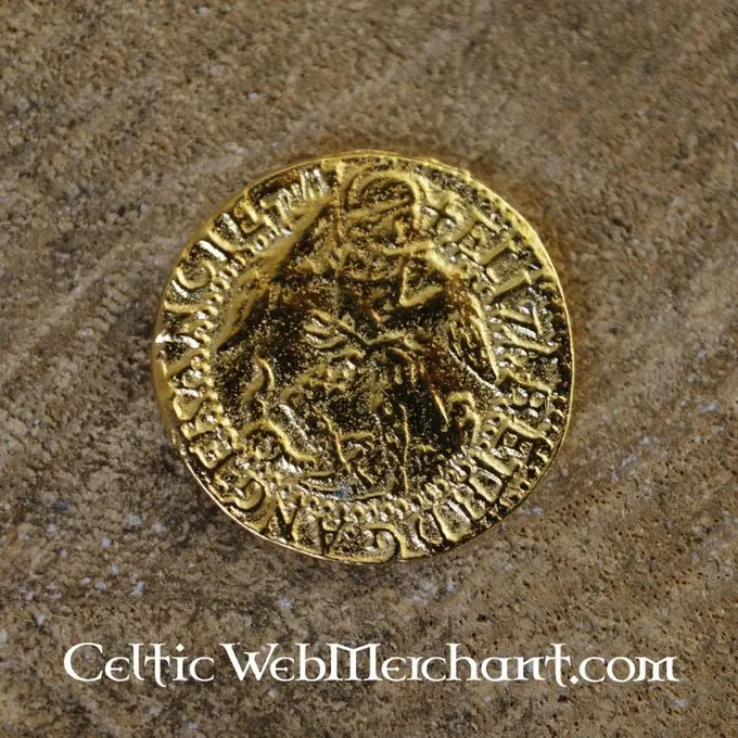 Diese Münze ist eine Nachbildung der Originale, die während der Herrschaft der englischen Königin Elisabeth I. Der Kopf zeigt den Erzengel St. Michael, der auf einem Drachen steht mit beiden Füßen geprägt wurden. Er ist über den Drachen mit einer kreuzförmigen Lanze stechen. Diese Seite hat die Inschrift: ELIZABETH D G ANG FRANCIE (Elizabeth durch die Gnade Gottes England, Frankreich). Die andere Seite der Münze hat die Darstellung eines Schiffs mit einem Schild, Kreuz und stieg. Mit dem Text ET HIBERNIE REGINA FIDEI (und Irland Königin des Glaubens).