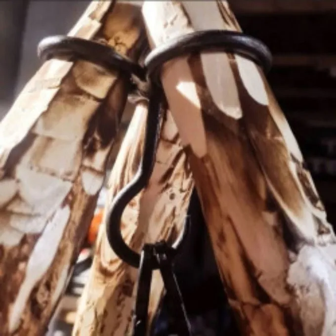 Machen Sie Ihr eigenes Stativ mit diesem Haken. Indem Sie drei Holzstäbchen oder Pole durch die Augen legen, können Sie schnell ein Stativ im Wald machen. Perfekt für offene Feuerkochen, Bushcraft und Trekking. Der Haken ist klein und leicht in einem Rucksack zu tragen. Eine kostengünstige Alternative zu einem großen Stahlstativ.