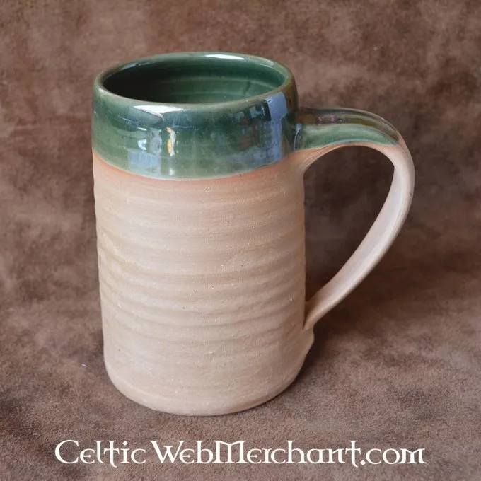 Dieser Bierkrug hat ein 0,5L Volumen und wird in der traditionellen mittelalterlichen Art und Weise hergestellt. Diese Rohware Keramik wird in Kooperation mit archäologischen Instituten rekonstruiert.