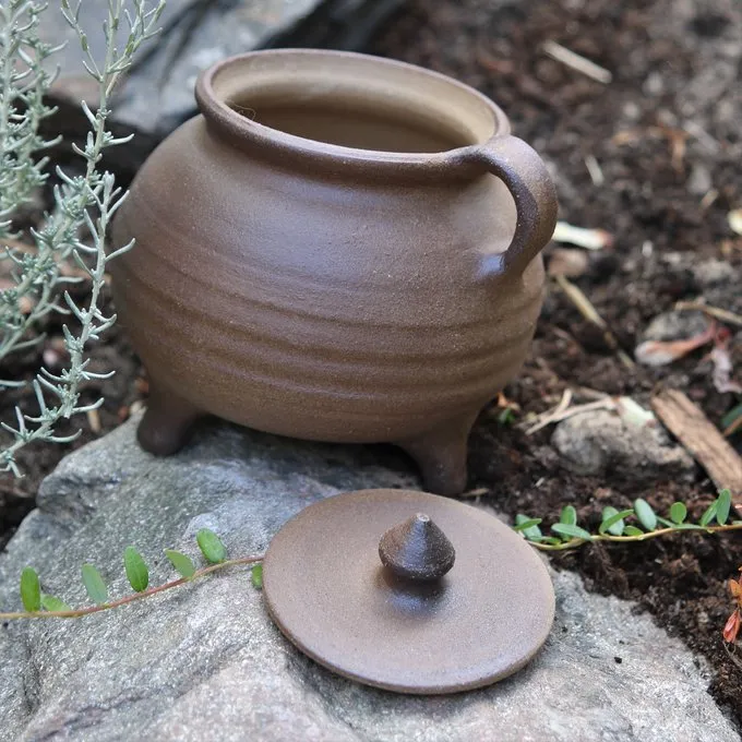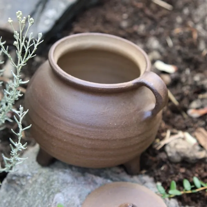 Dieser Kochtopf ist ein Nachbau aus dem 13. Jahrhundert mehr Originalen. Kochtöpfe wie diese waren in ganz Europa weit in die Neuzeit verwendet. Es war üblich, Essen in Keramiktöpfen zu kochen. Der Topf wurde durch das Feuer erhitzt, aber nicht berühren die Flammen.