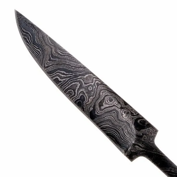 Diese handgemachte Messerklinge besteht aus 176 Lagen Damaststahl. Es besteht aus Stahl der Typen AISI 4340 und 15N20 und ist auf eine Härte von 56-58 HRC angelassen.