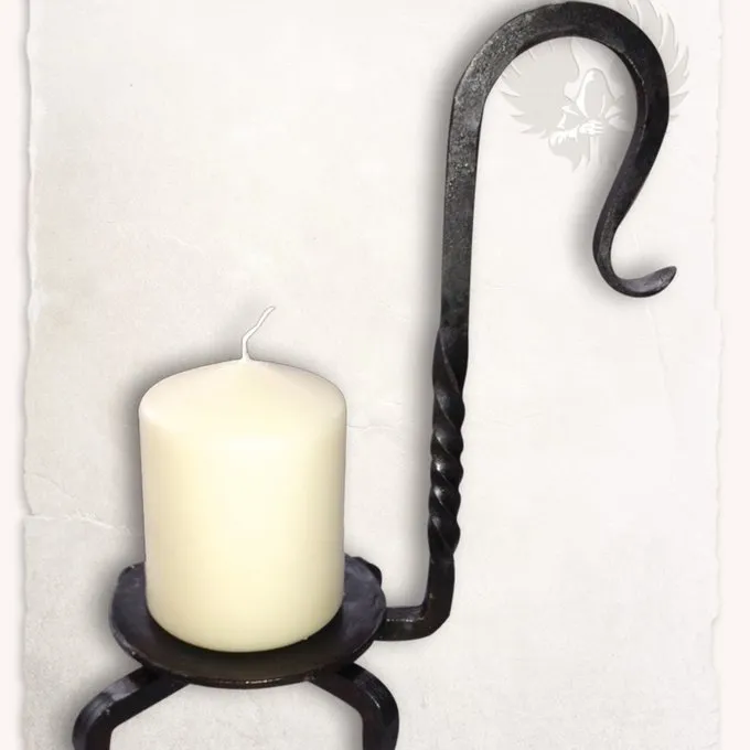 Diese handgeschmiedeten Kerzenhalter auf historischen Vorlagen basieren. Der Kerzenhalter ist aus Schmiedeeisen gefertigt und hat eine Platte, auf der die Kerze geklebt werden kann. Es kann verwendet werden, um die Kerze als auch zu tragen, wie es auf dem Tisch zu legen.