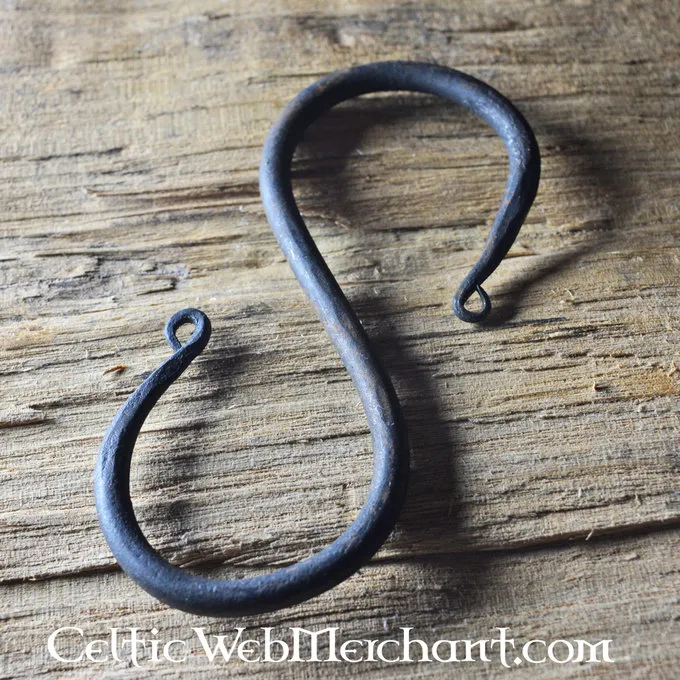 Dieser handgeschmiedeten S-Haken nach mehreren mittelalterlichen Originalen. S-Haken wurden verwendet, um die Pfanne über dem Feuer zu hängen. Es ist ein wichtiges Instrument für die Anzeige oder eine historische Küche nachspielen.