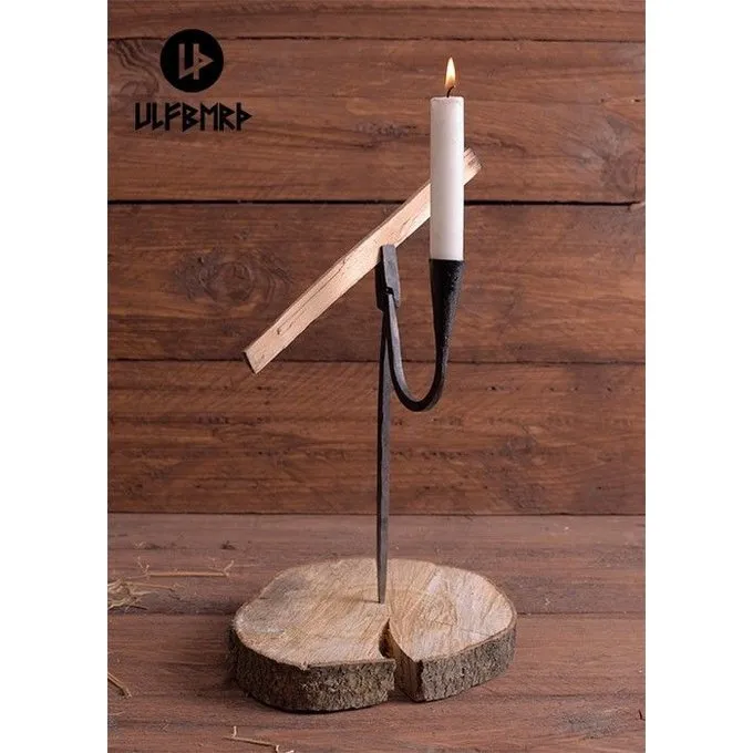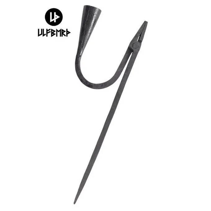 Diese handgeschmiedeten Leuchter leicht in einem Protokoll aus Holz oder in den Boden getrieben werden. Der Kerzenhalter hat Zange für eine Kienspan halten.