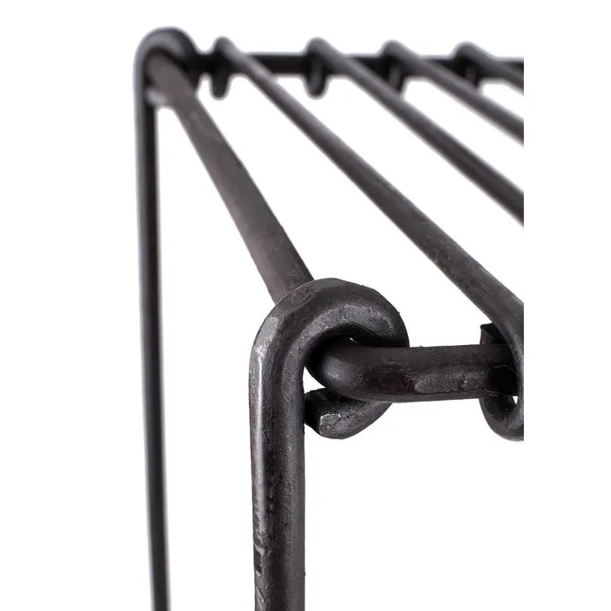 Eine handgeschmiedeten Grill- und Koch Rahmen, für, wenn Sie auf einem offenen Feuer in Freien kochen. Ideal für Nachstellung, LARP, Veranstaltungen, Festivals und Outdoor und Camping. Sie können diese Zahnstange auf dem offenen Feuer. Es hat scharfe Beine, so können Sie es auch in der Oberfläche zu verankern. Die Beine haben einen dickeren Ring etwa 10 cm vom Boden. Hier können Sie einen Zeltpflock, Nagel oder etwas befestigen sonst den Grill zu verhindern, vollständig in einer weichen Oberfläche versinken, wenn Sie schwere Pfannen auf sie. Der Grill besteht aus losen Metallstangen, so dass Sie sie auf und ab und stellen Sie den Abstand bewegen können. Sie können es für Töpfe oder Pfannen verwenden auf, zum Grillen direkt auf dem Grill oder Nahrung zu backen auf dem quadratischen Stück Metall. Dieser praktische Rack hat alles, was Sie für einen gemütlichen Abend am Feuer brauchen.