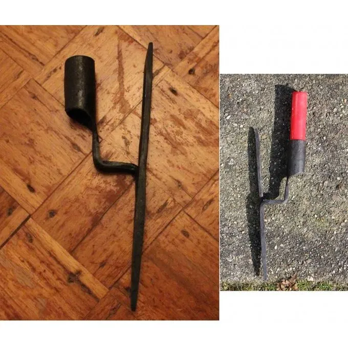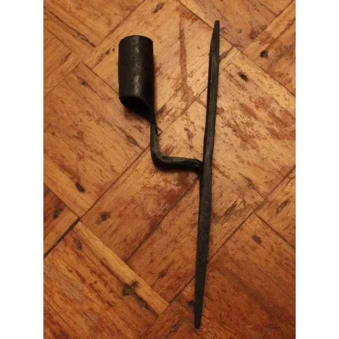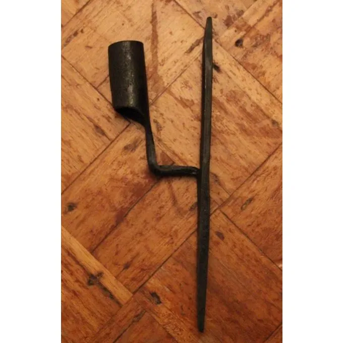 Seine Länge beträgt 17 cm und es ist komplett in Handarbeit aus Eisen. Der Kerzenhalter kann mit einer Schelle an der Wand befestigt werden, oder die Punkte gebogen werden kann. Der Halter hat einen Durchmesser von 18 mm.